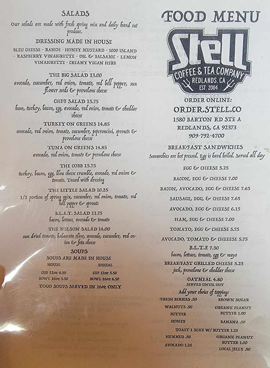 Welcome to Stell Coffee & Tea Co, a haven for coffee aficionados and food lovers alike, located at 1580 Barton Rd, Redlands, CA. This charming café offers an inviting atmosphere, perfect for savoring delightful dishes and exquisite beverages.
